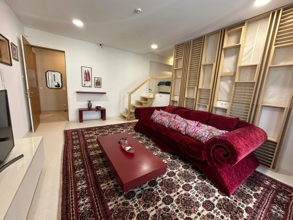 It comprises entrance hall, 2 level room(currently as living room and upstairs is study room or second bedroom), open space dining room and kitchen with exit to beautiful terrace and garden. Main bedroom,1 toilet,1 bathroom, lots of wardrobes. Also if you prefer dining area is big so this can be living and dining room area.