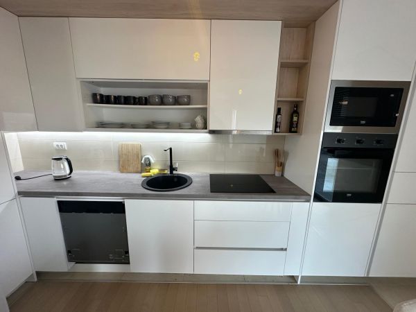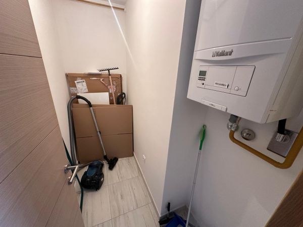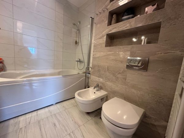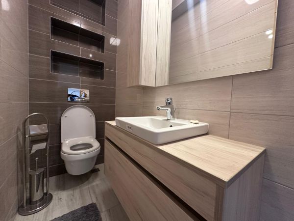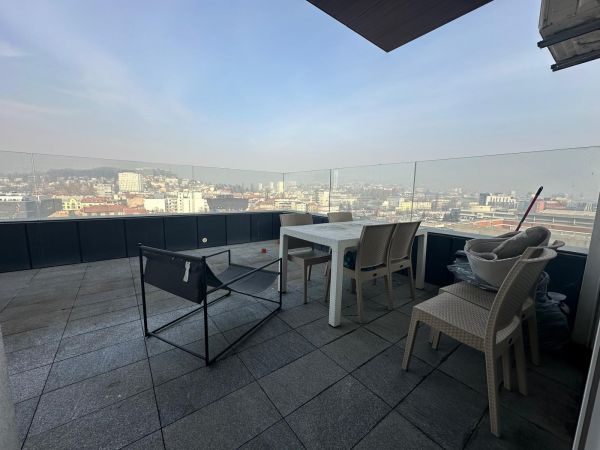 Modern furnished apartment of xx m2 located in recently build building in Skenderija area. The apartment is rented with parking space in garage on ground floor in the building. The apartment consists of big open space living room, and dining area with exit to terrace, semi detached kitchen , hallway, boyler room with storrage or pantry, 2 bathrooms, 2 bedrooms. Terrace is big and provides beautiful view on entire Sarajevo. Gas heating with back up. Cable TV. Internet.Alarm. Air conditioning. Video surveillance.