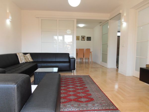 3-4 bedrooms(one bedroom can be dining room), living room(exit to private garden) dining room with kitchen.