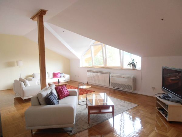 Size is 125 square meters and comprises entrance hall,3 bedrooms,2 bathrooms,living room,kitchen and dining room.From living room you can enjoy beautiful view at town of Sarajevo especially during the night.