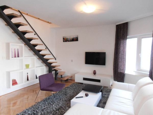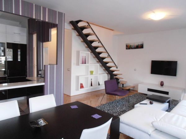 Apartment is on two levels and comprises entrance hall, 3 bedrooms,2 bathrooms,living room and dining room as an open space plus kitchen,balcony,storage.On second level there is nice space for library.