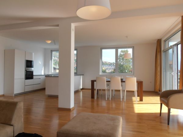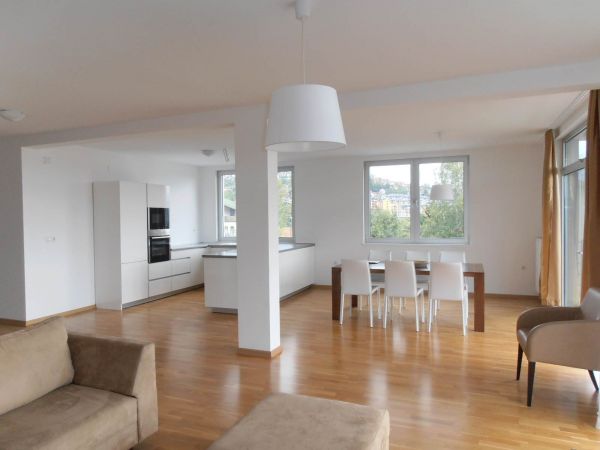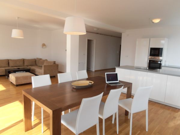 Apartment comprises living room(possibility for fireplace),dining room and kitchen area with exit to big terrace,3 bedrooms,2 bathrooms(master bedroom has it's own bathroom with small balcony) , laundry room,closet room .