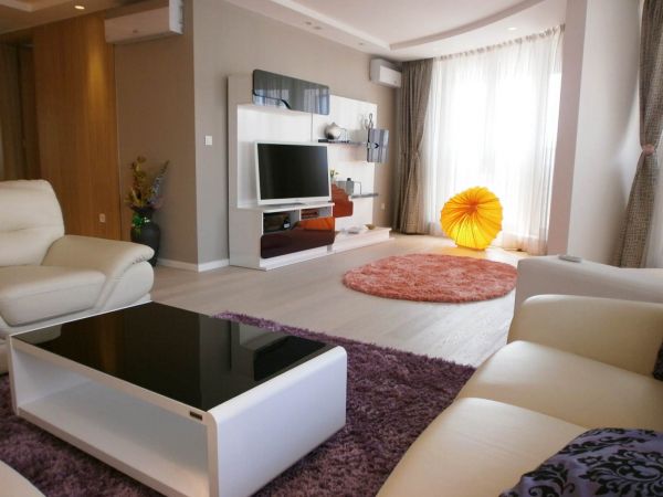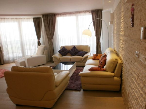 Apartment comprises large entrance hall,1 bathroom,1 regular bedroom with balcony, 1 main bedroom with 1 additional bathroom,open plan living room with dining area and kitchen.