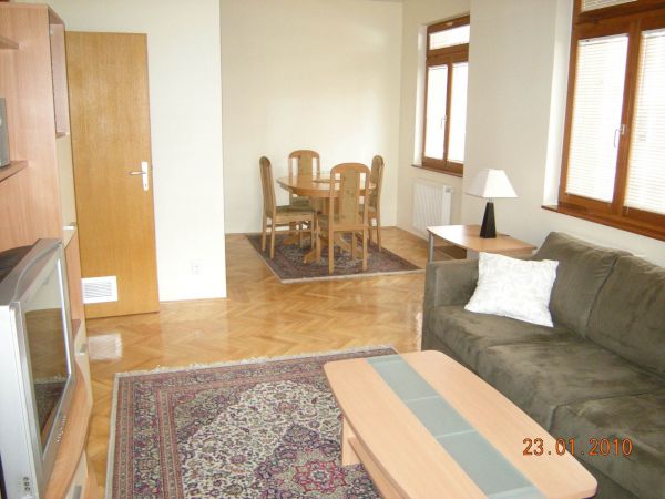 Apartment comprises living room area,dining room and kitchen,2 bedrooms,1 bathroom and storage.Apartment is very nice and bright and provides garage for 1 car.