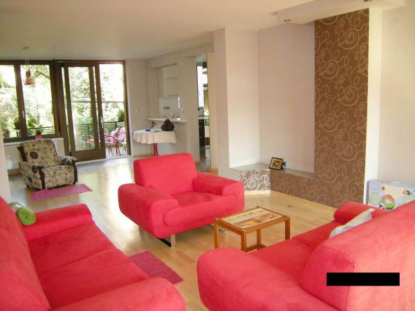The apartment has 96 m², and comprises living room with dining room area(from here you can enter to terrace from where you can go directly to back garden of the house),kitchen,1 bedroom on 2 levels,bathroom,another bedroom with bathroom and pantry.