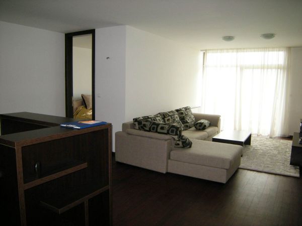 Apartments are modern,bright with nice view at entire city of Sarajevo. Size is 100 square meters.Apartment comprises two bedrooms,two bathrooms,big living room with kitchen and dining room.Layout is modern,comfortable and very luxurious.Also there is a big terrace with beautiful view over town that is characteristic of this building.Apartment is momentarily fully furnished.