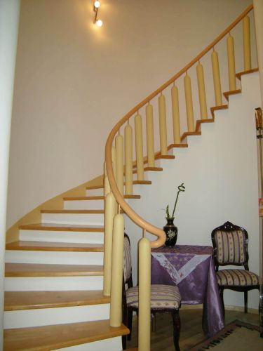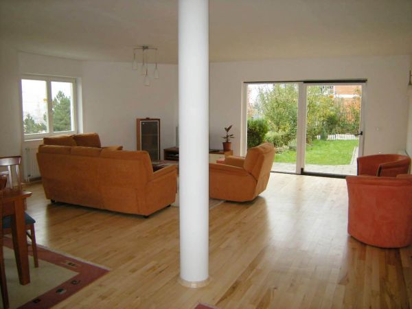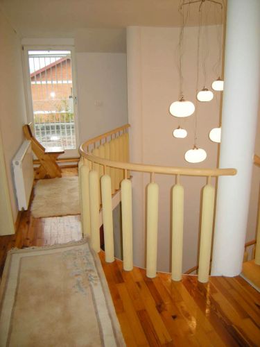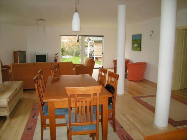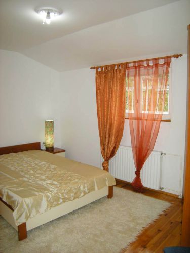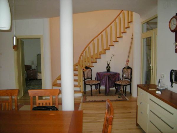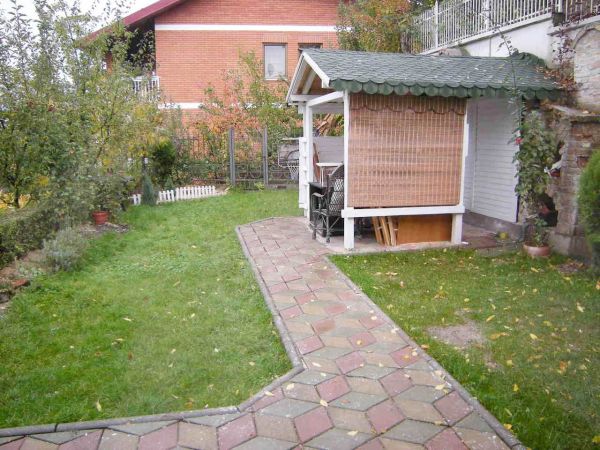 Ground floor is an open area for living room and dining room from where you can exit to beautiful garden that is made for pleasure(barbecue,garden house).There is also kitchen,1 main bedroom with bathroom,another bedroom,1 more bathroom,laundry room and storage.