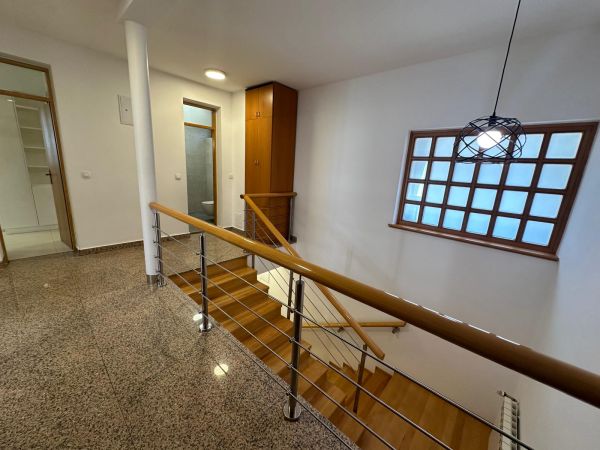 At the main entrance of the house is hallway with wardrobe space from where you enter to big spacious living room(fireplace) with exit to balcony with dining area,kitchen with storage and toilet.Ground floor of the house offers master bedroom with bathroom,2 more bedrooms and big bathroom. From that part of the house you can directly go to the garden or you can use the main gate of the house that is connected with the staircase to the garden.