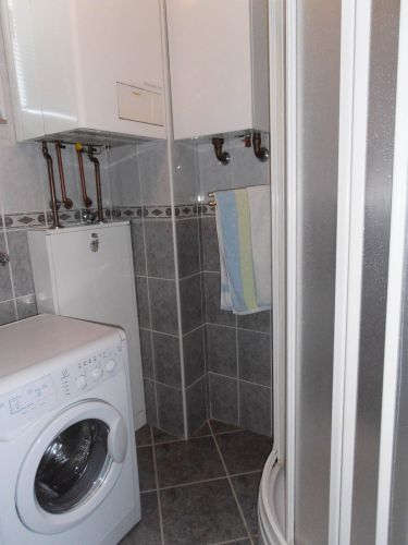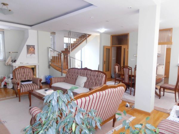 First level : entrance hall , big open space for living room with fireplace that is connected with dining area from where you can go to terrace.Kitchen is semi divided from this space and very modern.On this level there is also a bathroom.