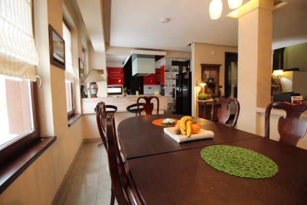 First floor comprises big open spacious living room on two levels with fireplace that offers one corner as study corner.Living room is connected with dining area and nice modern totally equipped kitchen.