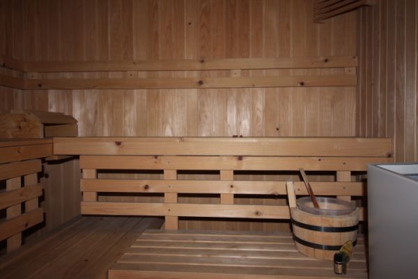 Few stairs up from that level is relaxing part of house -Sauna , bathroom and 1 bedroom.