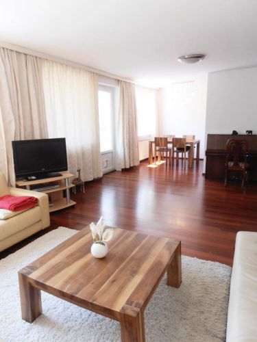 Apartment comprises large entrance hall, main bedroom,big open area for living room, dining area and kitchen from where you can go to balcony that is glazed and can be used during entire year.Also there is another bedroom that is used as a study room or guest room,1 bathroom and 1 toilet.