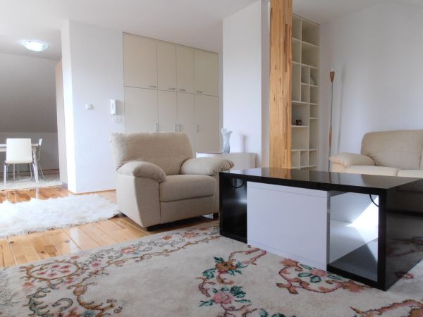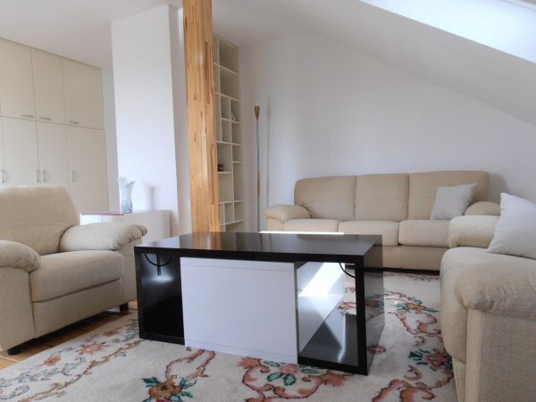 Apartment is situated on top floor of the building and comprises entrance hall,2 bedrooms,bathroom,big open living room space with dining area and kitchen.This open area offers beautiful view over Old Town.