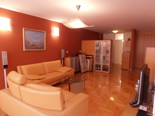 The apartment comprises:entrance hall with lots of waredrobes, big open area living room that is semi connected with dining room and kitchen. This area is very bright and sunny because of big windows. There are two bedrooms(momentarily one is used as study room but that can be changed by your needs), big bathroom with hydro-massage bathtub and slide door inbuilt space for washing machine. Apartment is very quiet and will provide max privacy.