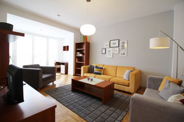 Apartment comprises entrance hall with lots of wardrobes,,kitchen and dining room,1 bedroom with balcony,1 bathroom,big sunny living room.