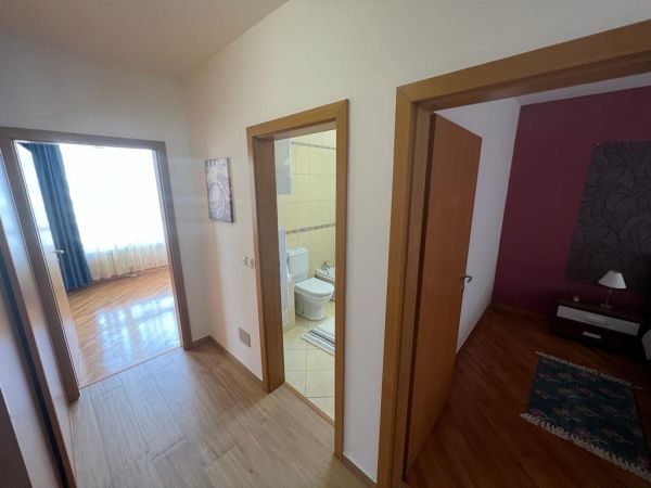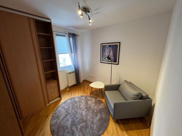 The apartment comprises:entrance hall with wardrobes, big open area living room(fireplace) with dining room (this area is very bright and sunny because of big windows). From here is exit to terrace that offers view at city center.Kitchen is modern and fully equipped. . There are three bedrooms(momentarily one is used as study room but that can be changed by your needs), big bathroom with hydro-massage bathtub and another with shower and space for washing and drying machines. Apartment is very quiet and will provide max privacy.