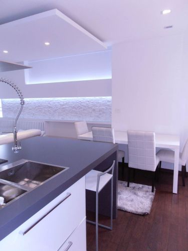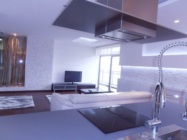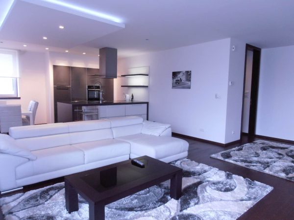 Apartments are modern,bright with nice view at entire city of Sarajevo. Size is 100 square meters.Apartment comprises big living room with kitchen and dining room with entrance to terrace with great view at city,private part of apartment reserved for main bedroom and bathroom with lots of wardrobe space,another bedroom with exit to terrace,additional bathroom,Layout is modern,comfortable and very luxurious.Also again to mention there is a big terrace with beautiful view over town that is characteristic of this building.Apartment is momentarily fully furnished but can be rented with or without furniture.