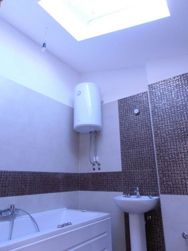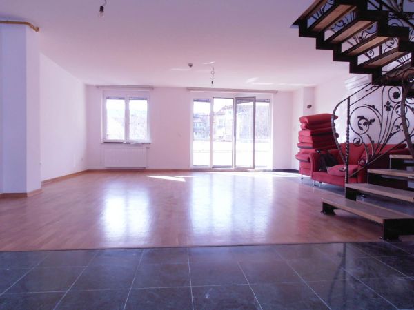 Layout is spacious, bright ,comfortable and modern. Apartment consists of open plan living room with exit to terrace with great view,dining area, kitchen(momentary in process of making),bathroom. On second level there is main bedroom with its own bathroom and closet corner, 2 bedrooms and bathroom.