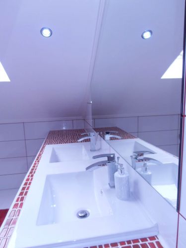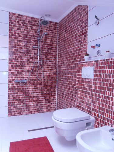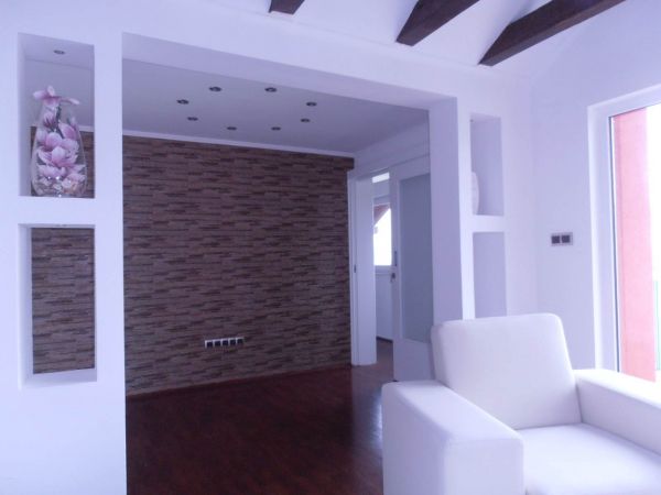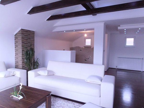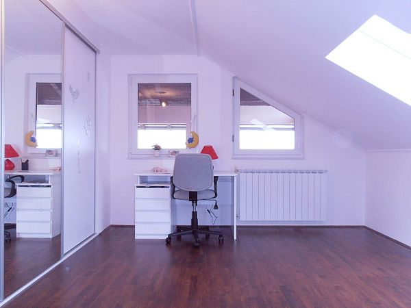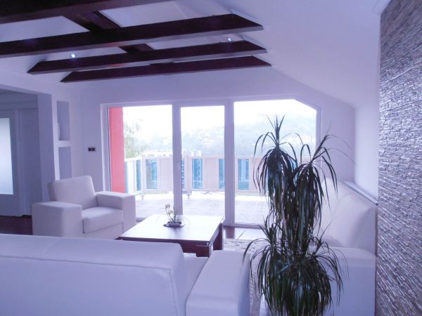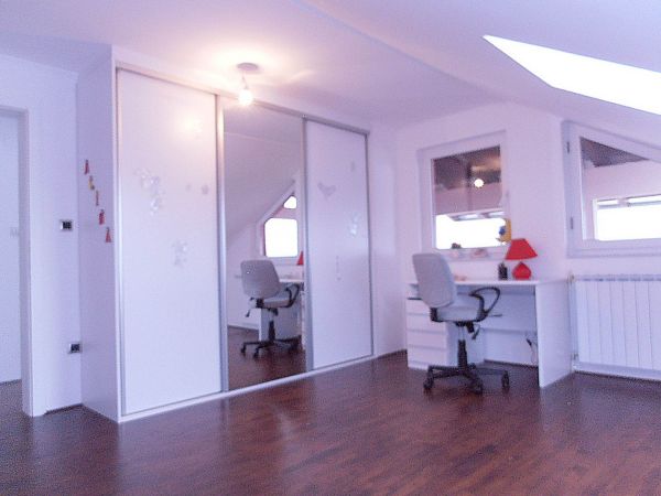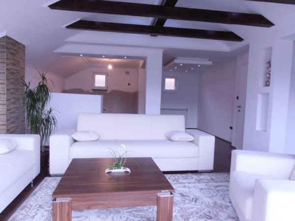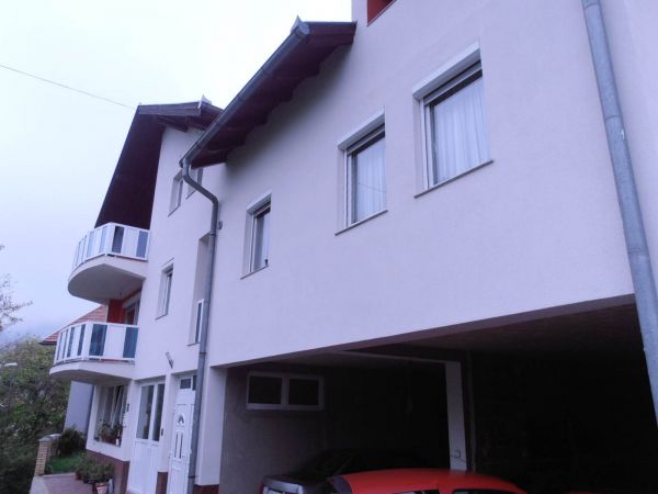 One level down is living room (same terrace like upstairs)with kitchen and dining room,2 bedrooms with balcony,bathroom,toilette. Also there is storrage and garage for 2 cars. House can be rented furnished or unfurnished.