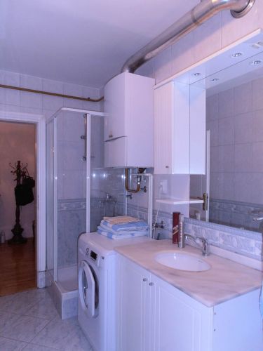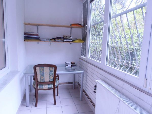 Apartment comprises entrance space, living room with dining area, small but very functional kitchen , 1 bedroom that is connected with in-glassed balcony that is used as study/wardrobe room(from where view is full with green so it feels like garden) and bathroom with shower and massage tub..