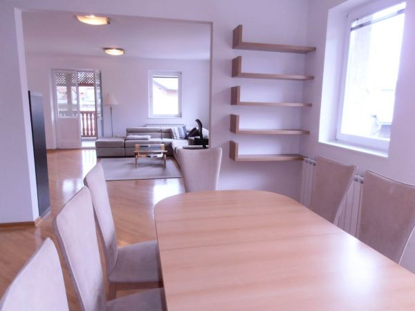 Apartment is on second floor has 85 square meters and consists of kitchen and dining area connected to open living room that have exit to terrace((20 square meters) with beautiful view. 2 bedrooms,bathroom,laundry room.