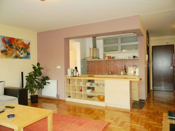 Apartment has 75 square meters, living room with dining room and kitchen,2 bedrooms,bathroom,balcony with nice view.Place is totally furnished and equipped with modern appliances.
