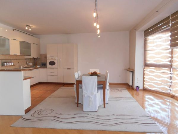 Size is 105 square meters and comprises entrance hall, large open living room and dining area with modern kitchen. From here you have beautiful view at center of Sarajevo. Also 2 bedrooms, 1 big bathroom,1 toilet,in glazed balcony and wardrobe room.