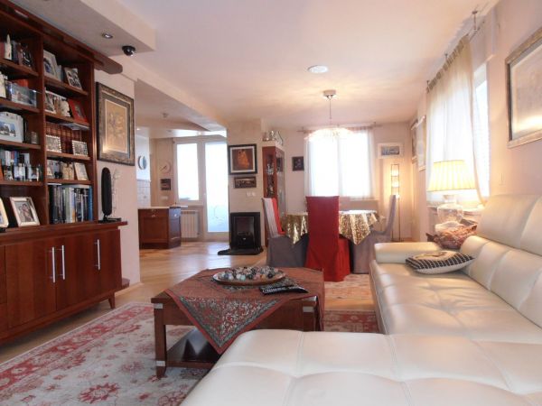Apartment has 100 square meters and comprises entrance hall with wardrobes,big open living room and dining room area with kitchen. From living room is balcony with beautiful view at city park and center of Sarajevo. There is another in glassed balcony from kitchen that can be used as storage. Also there is main bedroom and second bedroom and bathroom.