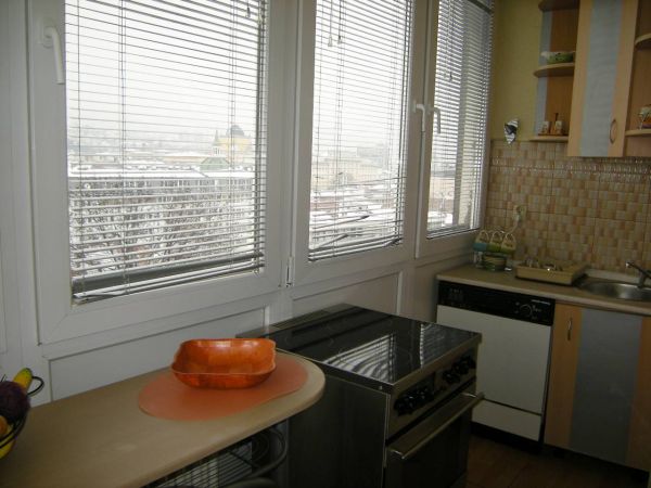 Large windows in kitchen and dinning area with beautiful view over the city.