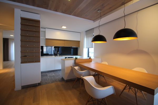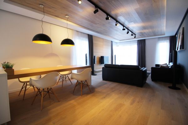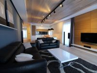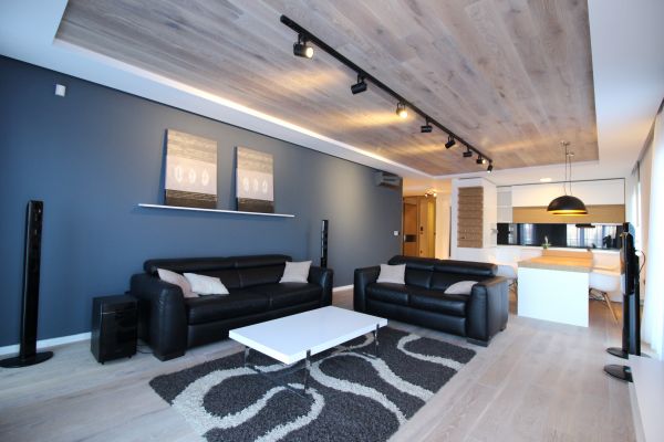 Totally furnished,modernly but yet functionally equipped,120 square meters,open living room and dining area with semi-open plan kitchen,master bedroom with bathroom,2 bedrooms,bathroom,laundry room. Garage for 2 cars,storage, fitness room,sauna,24 hour security system. Rest of furnishing will be done by needs of future tenant.