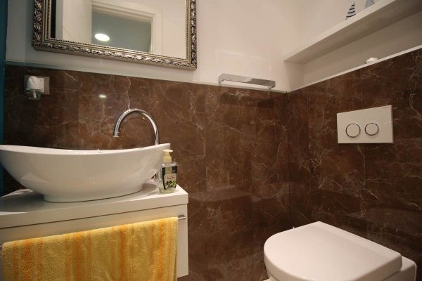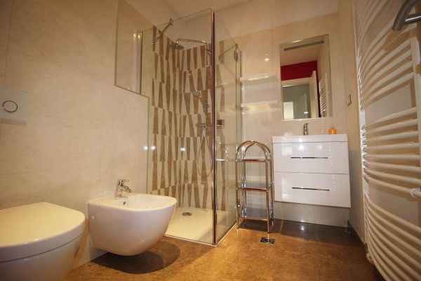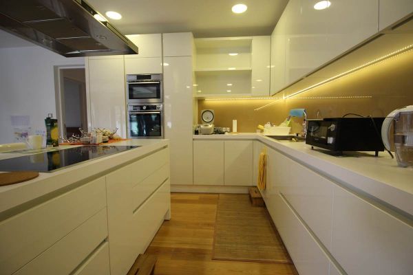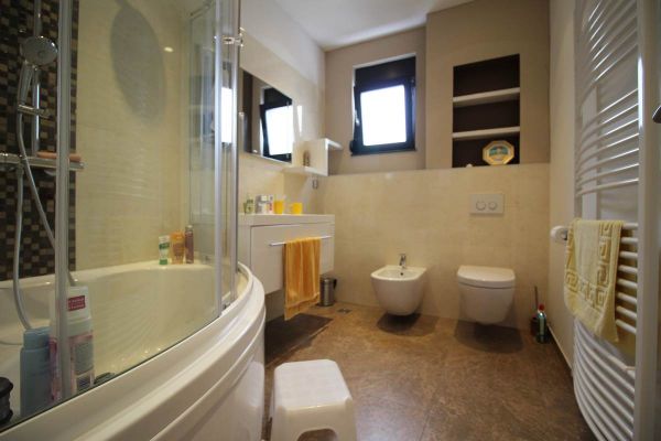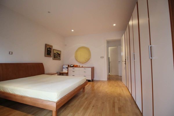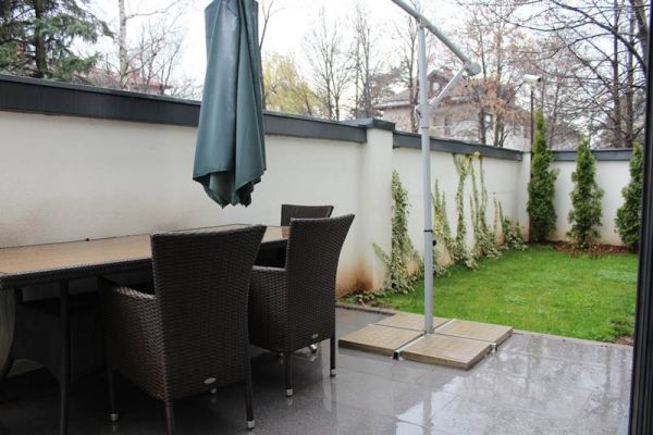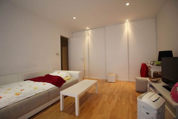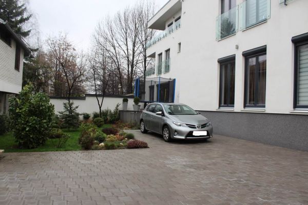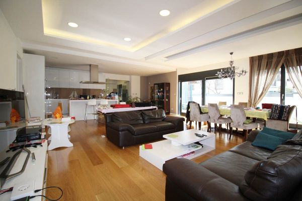 This apartment area of 210 square meters have spacious entrance hall, open floor living room area with dining room and kitchen from where is exit to terrace and garden,four spacious bedrooms, three bathrooms ,toilet, long hall with closets, spacious laundry room . Place offers 2 parking places for your cars inside of graded gates.