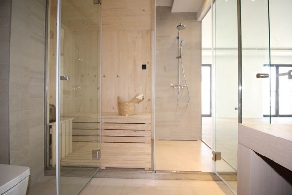 Modern top quality building and apartment in peaceful,secured area. Apartment have 185 square meters,plus 40 square meters of outside places-3 terraces). Comprises large open kitchen (terrace),dining area and living room area with fireplace and big terrace,toilet. Other level comprises private part for master bedroom with large bathroom with bathtub,shower ,toilette and sauna.Also there is closet room.Another 3 bedrooms with terrace,extra bathroom and long corridor with closets. Underneath staircase there is additional space.