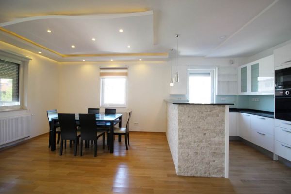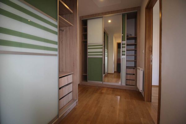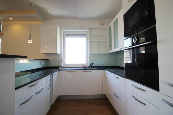 Apartment comprises 145 square meters,open living room with fireplace and in glassed balcony with dining room and kitchen,master bedroom with walk in closet and bathroom,2 additional bedrooms,another bathroom,toilette,lots of inbuilt closets,pantry,storage,parking place in underground,secured garage.