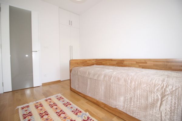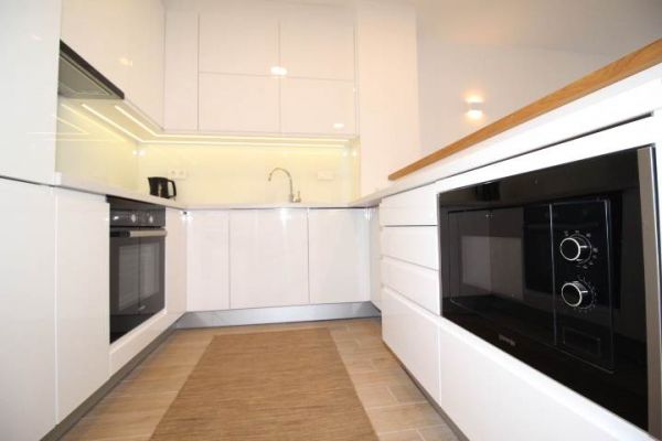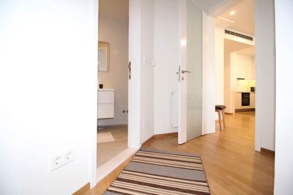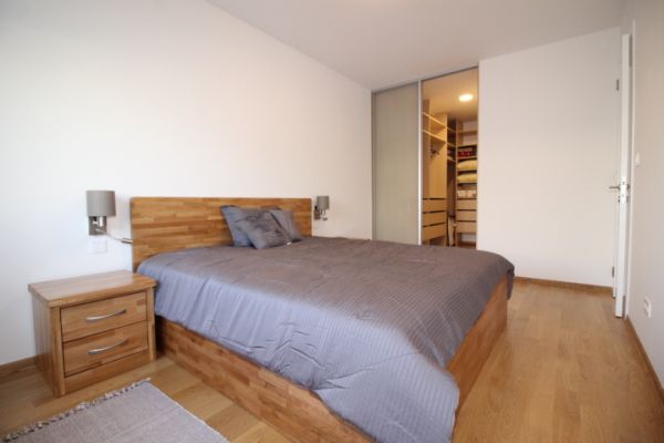 Apartment comprises 88 square meters,open living room with balcony together with dining room and kitchen,master bedroom with walk in closet and bathroom,1 additional bedroom,toilette,lots of inbuilt closets,pantry,storage,parking place in underground,secured garage.