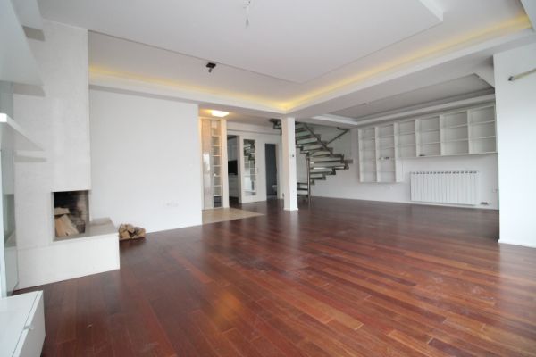 Apartment has 135 square meters and comprises:first level is open living room (fireplace) and dining room area with exit to terrace,kitchen and toilette. On second level are 2 bedrooms(one with terrace),bathroom,one master bedroom with own closet room and bathroom.