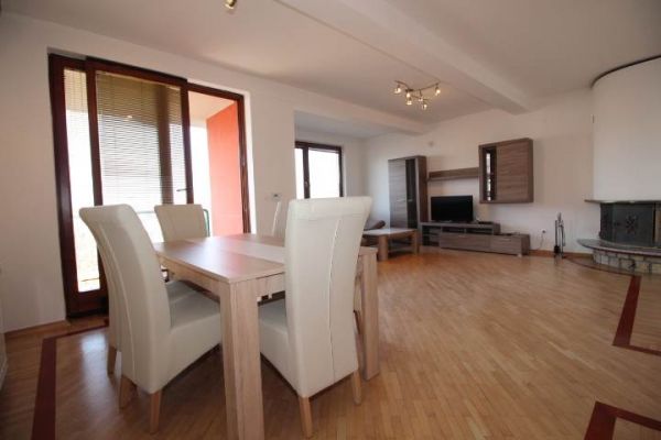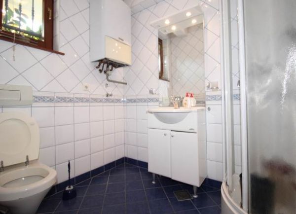 House comprises ground floor and extra 2 floors.At ground floor there is big open space(living room and dining area) with kitchen and exit to big yard from one side and to balcony from other. Living room has beautiful fireplace and from balcony extraordinary view at city.