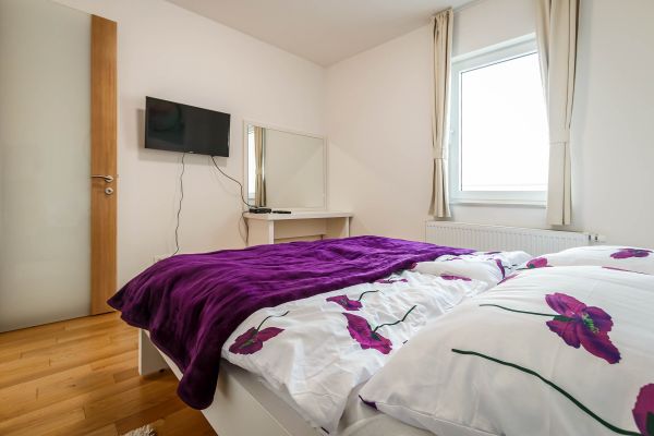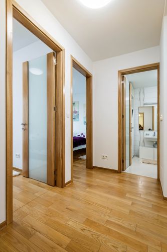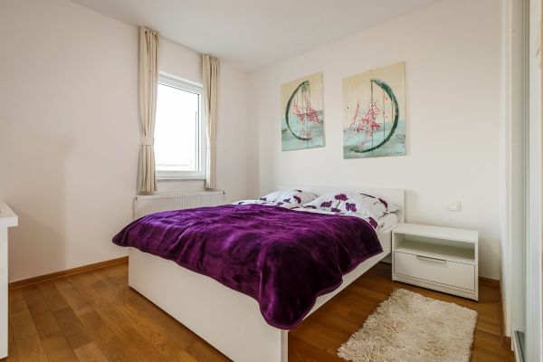 Apartment comprises 78 square meters,open living room( with partially in glassed balcony) with dining room and kitchen,master bedroom with walk in closet ,another bedroom, bathroom,toilette,pantry,parking place in underground ,secured garage.