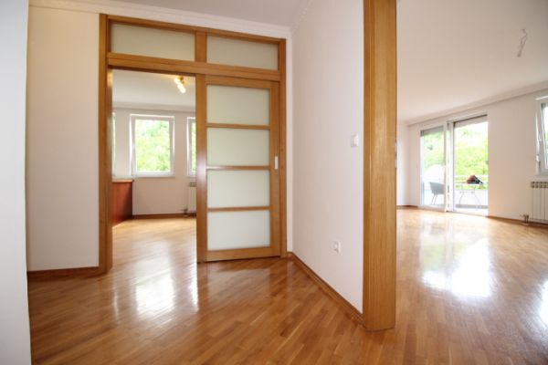 The apartment comprises living room with terrace, dining room with kitchen , master bedroom with bathroom,three additional bedrooms(one with balcony)big bathroom, and spacious entrance hall and 2 wardrobes rooms . There is an underground garage with one parking place . Additional storage/pantry.