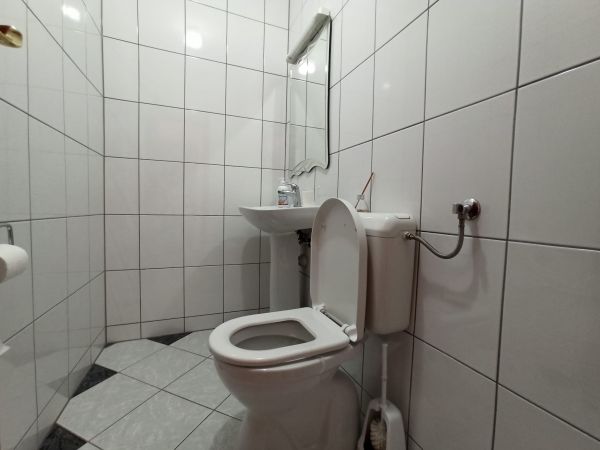On entrance level,ground floor is one room(study,guest room,office),toilette,garage and open space living room. Also from that level with back up starecase in house you can go directly to terrace and garden.