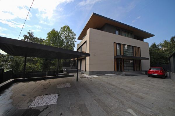 Surrounding area is 411 square meters,secured with fence,cameras and alarm. Front and back entrance for car and pedestrian. Covered parking for 3 cars plus 2 more cars. Small garden.