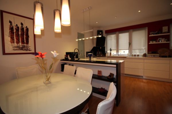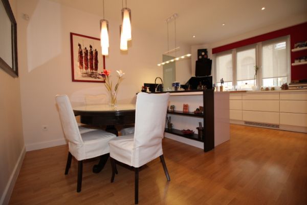 Apartment comprises living room with balcony, dining area with modern kitchen and pantry/boiler/laundry room .There are 3 bedrooms(one has its own bathroom),hallway with in-build wardrobe and another bathroom .Apartment has garage for one car and parking place in front garage .
