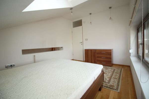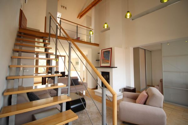 The apartment is on 2 level, has 120 m², and comprises entrance space,big bright living room/fireplace ( exit to balcony from where you have beautiful view at city),with dining area and kitchen,1 bedroom, one bathroom and one toilette and boiler room.