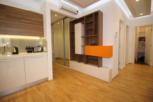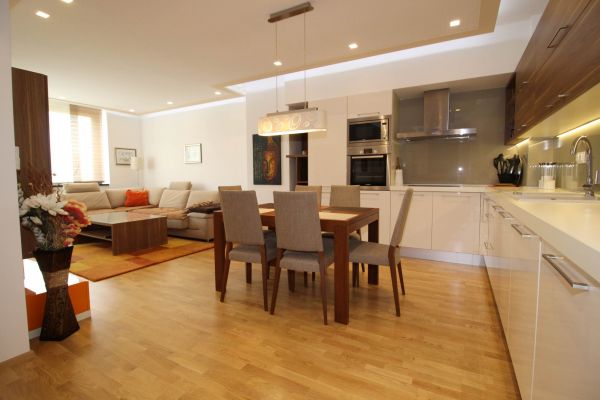 Also, this building its near Wilsonovo setaliste, your ideal place for relaxation. Apartment consists of open living room, dinning room and kitchen and exit to in glass balcony, 2 bedrooms,one bathroom,one toilette,pantry.