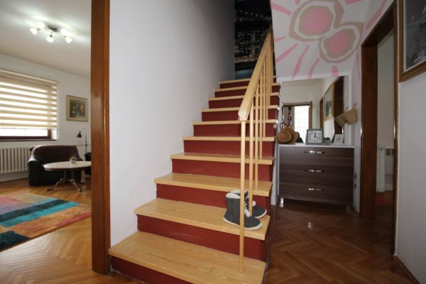 House in Breka area with outside space(2 balconies ,gazebo and green part of garden). Living room with balcony and dining part , kitchen and storage,bathroom. On upper levels there are master bedroom with balcony and closet room ,and 1 additional bedroom and 1 bathroom. Level up are 2 bedrooms and open space for attic.