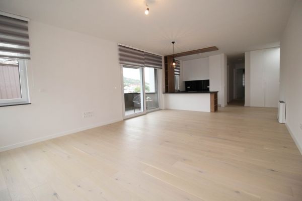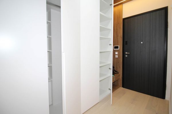 Apartment comprises 116 square meters,open living room with dining room and kitchen,terrace,master bedroom with walk in closet and bathroom,2 additional bedrooms,another bathroom,toilette with utility room,to be lots of inbuilt closets,pantry,storage.