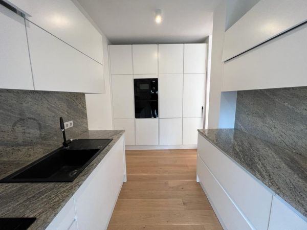 Apartment comprises 130 square meters,open living room with dining room, kitchen with balcony,terrace,master bedroom with walk in closet and bathroom,2 additional bedrooms,another bathroom,toilette with utility room,to be lots of inbuilt closets,pantry,storage.