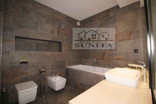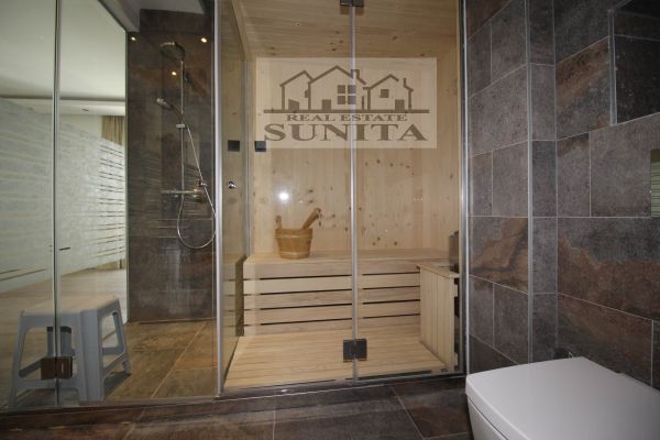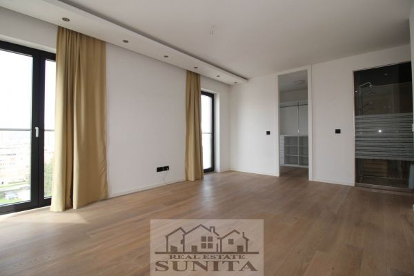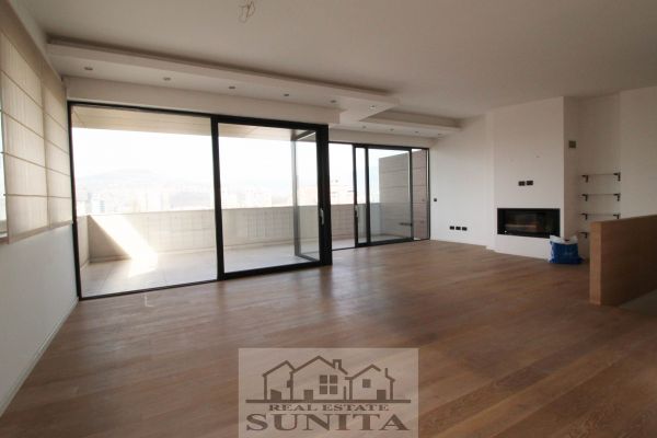 Modern top quality building and apartment in peaceful,secured area. Apartment have 185 square meters,plus 40 square meters of outside places-3 terraces). Comprises large open kitchen (terrace),dining area and living room area with fireplace and big terrace,toilet. Other level comprises private part for master bedroom with large bathroom with bathtub,shower ,toilette and sauna.Also there is closet room.Another 3 bedrooms with terrace,extra bathroom and long corridor with closets. Underneath staircase there is additional space.