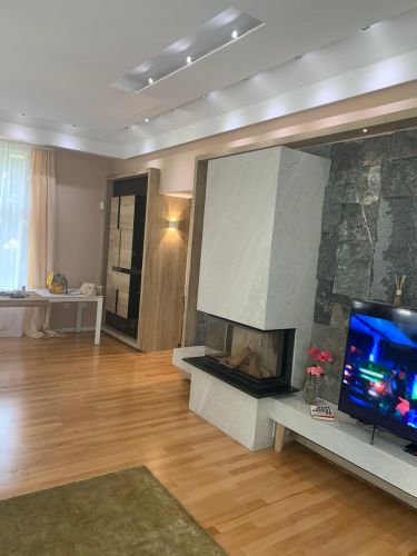 Modern and luxury, 100 m2, apartment, situated in Sarajevo, in between Marijin Dvor and beginning of Grbavica area. An apartment is completely renovated, and comprises 2 bedrooms, very spacious living room (cca 60 m2) with dining room and kitchen, bathroom and hallway. The apartment is fully furnished and equiped with modern furniture, ambiental lights, fireplace, LCD TV, cable TV connection and internet connection, as well as with double central heating system (gas + electricity). Fireplace.