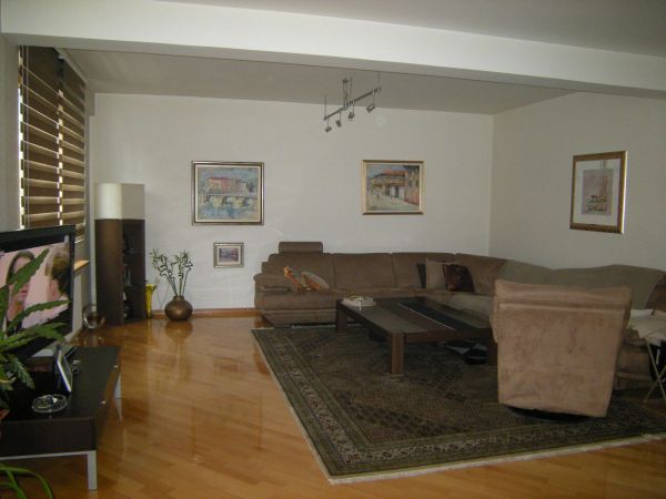 Size is 105 square meters and comprises entrance hall,living room , dining area with modern kitchen with beautifull view at center of Sarajevo, 2 bedroom, 1 large bathroom,1 toilet,closed balcony and wardrobe room