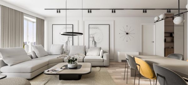Open space living and dining area with kitchen